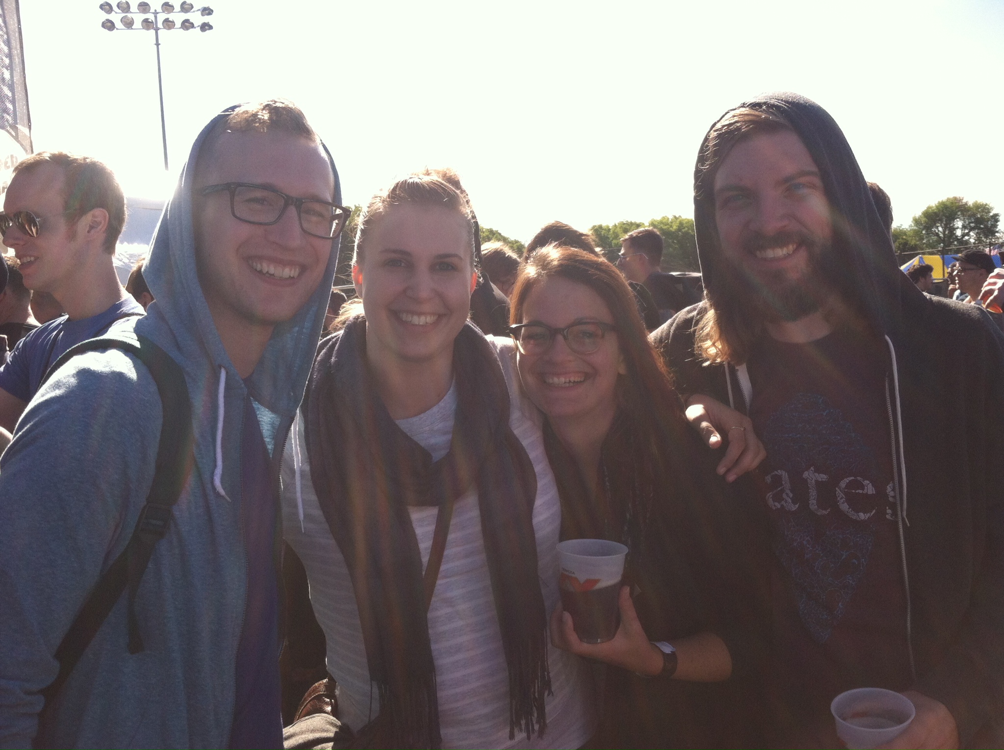 - But back to my point. You can’t find your friends at a show. So once you’re in contact, it’s dangerous to split up without a clear and easy reunion plan. At the end of Saturday night, as Taking Back Sunday was getting ready to play and we were wedged up near the front of the crowd, Matt had to pee. Damnit, Matt. And so he disappeared into the crowd to find a port-a-potty. And I mean that he literally disappeared – not ten seconds after he left us he was lost to sight. Our cellphones were, of course, not working, and it seemed certain that he’d never make it back before TBS started playing. Which was correct. 30 minutes after he left, they fired up their set and Matt was still nowhere to be seen. And then, three songs in, with ‘Liar’ ripping through the crowds, a vice-like grip took my shoulder. I wheeled around, thinking that someone had slipped on the mud and needed help getting up, and there was Matt, grinning ear to ear and forcing his way between two very smushed-looking people. After we had rocked out for the rest of the show, Matt said to us, “There was a moment there where I thought I was never going to see any of you again.” Let it not be said that there are no miracles in this world.