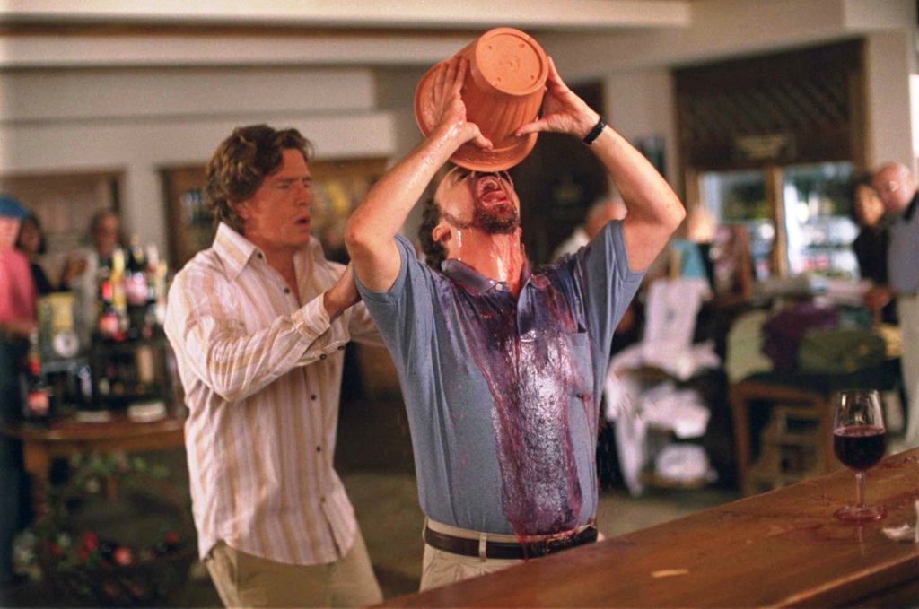 Considering its focus on wine culture, Sideways‘ best moments feature a suitably dry bacchanalian humor. Miles is meticulous and passionate, a nerd with whom I can relate. In one of my favorite scenes, he waxes on about the characteristics of a wine that he and Jack are tasting. Jack is clearly disinterested but trying to be a good friend, attempting to appreciate Miles’ insight and to carry on the conversation. They savor the wine’s aroma and flavor and only when Miles steps out of his own mind and stares at Jack for a moment does he realize that his friend is (supportively) pretending. “Are you chewing gum?” he shrieks as the scene ends. There are quality writerly jokes, too. One mocks the prospect of asking your friends to read revision after revision of your 800-page manuscript, another pokes fun at the terrible title that Miles has chosen (and which he believes to be profound), while yet another eviscerates that bane of writers describing their work to anyone else: “It’s difficult to summarize,” says Miles when his love interest inquires after the novel that has been his life’s ambition.